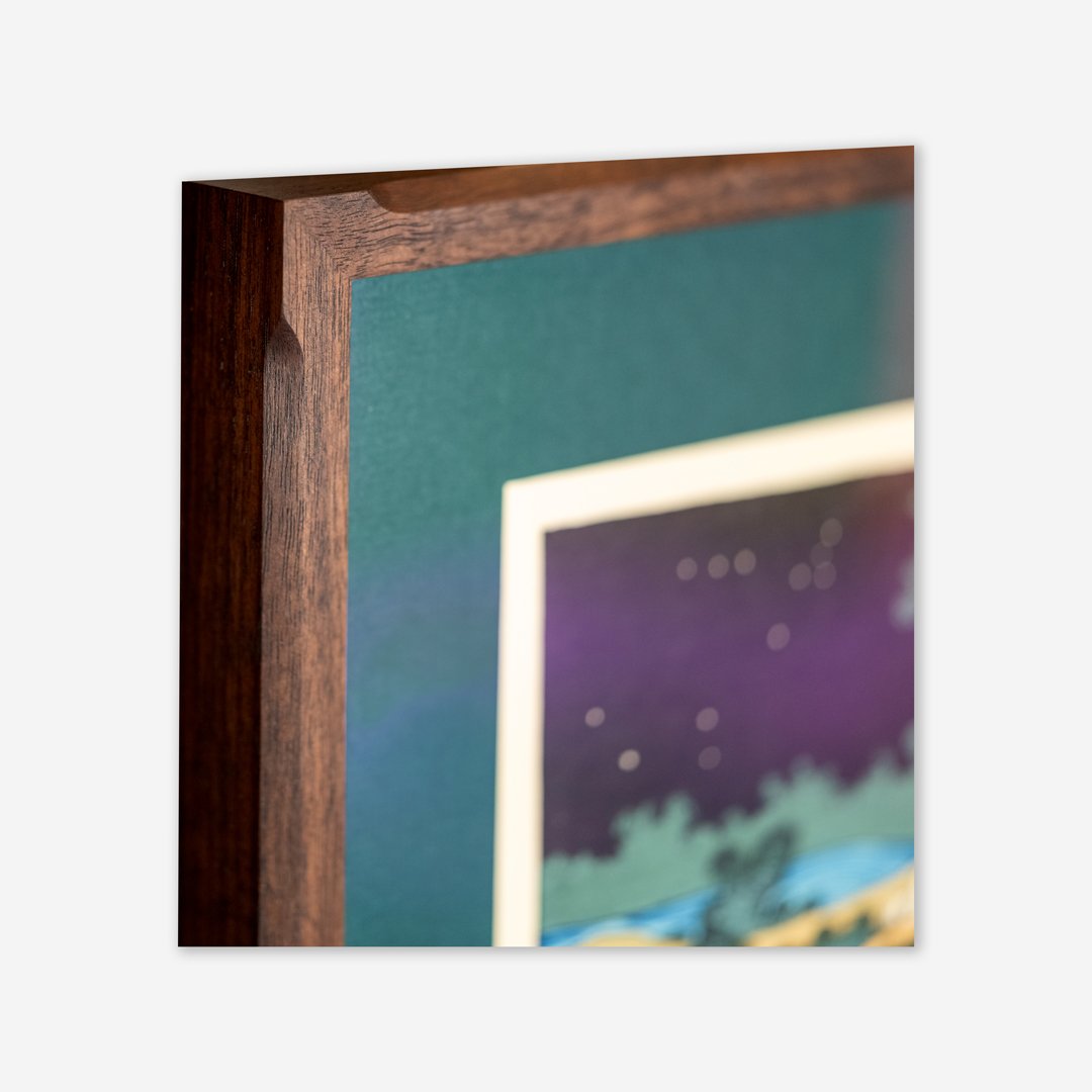 Detta konstverk är även inramat med en grön passepartout och självklart antireflexbehandlat museumglas med bra uv-skydd.