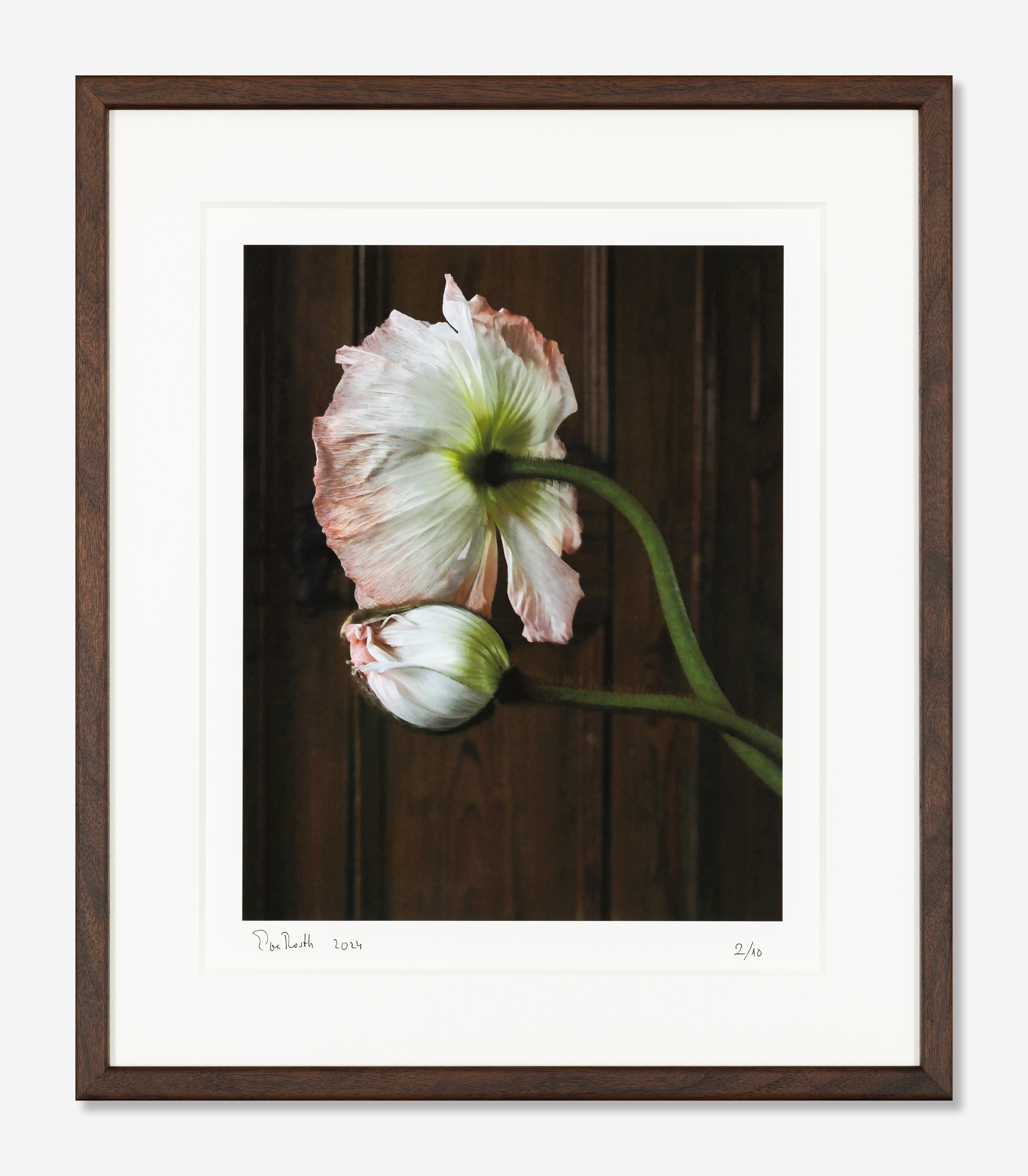 Jag såg direkt att en valnötsram skulle passa bra till. Så det blev en handgjord valnötsram som har rundade kanter, slipad i omgångar och sedan ytbehandlad med en unik specialolja(chocolate). Av oljan blir valnöten mörkare i tonen.